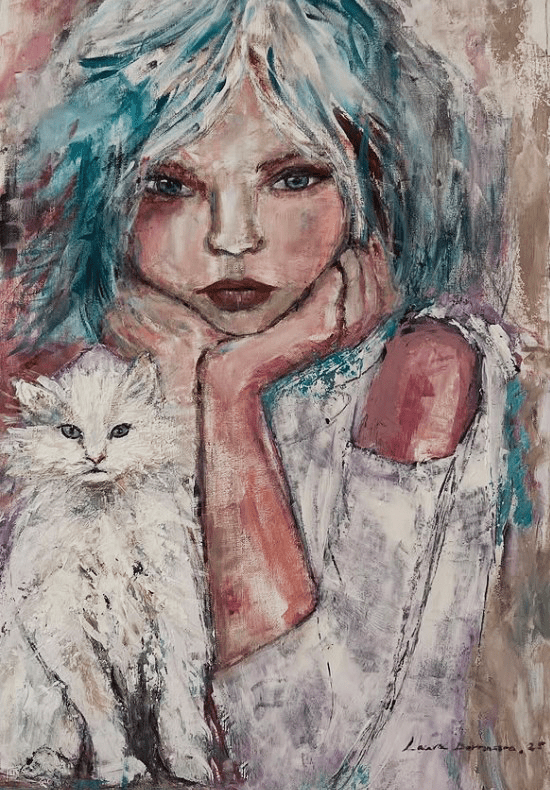 En este retrato, la niña y su gato nos conectan con la ternura y la curiosidad del mundo infantil. Freya, con la mirada abierta al espectador, encarna la pureza, la imaginación y la sensibilidad, mientras Brisingr, su fiel compañero felino, refleja la complicidad y la intuición silenciosa. Juntos simbolizan la armonía entre lo humano y lo animal, lo terrenal y lo mágico, invitándonos a contemplar la vida con asombro y suavidad.