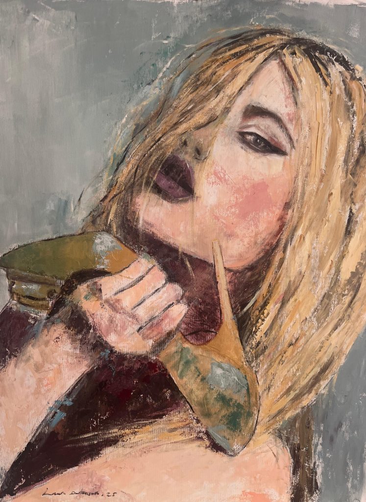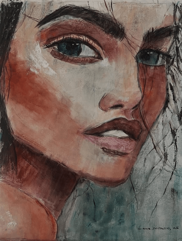 Seducción es un retrato femenino, que fusiona humanidad y simbolismo para expresar la fuerza magnética de la mirada. El rostro, delicado y al mismo tiempo firme, emerge entre velos de color que sugieren emociones ocultas y deseos silenciosos. Cada trazo busca transmitir una invitación íntima, no solo visual, sino emocional: una seducción que no impone, sino que envuelve. La obra captura la vulnerabilidad y el poder de lo femenino en un instante suspendido, donde la emoción se convierte en lenguaje y la mirada en puente hacia el alma.